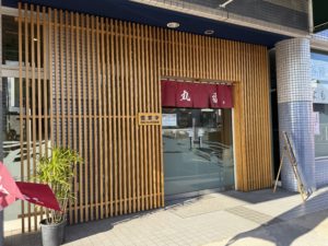 木格子と深いえんじ色の暖簾が目を引く“和”の雰囲気あふれる入り口が特徴で、店内に入る前から落ち着いた温かさを感じられます。